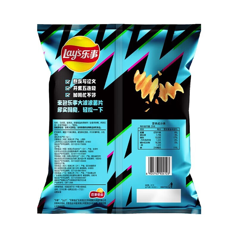 乐事(Lay's)膨化食品 味美香脆 休闲零食 大波浪薯片铁板鱿鱼味 135g