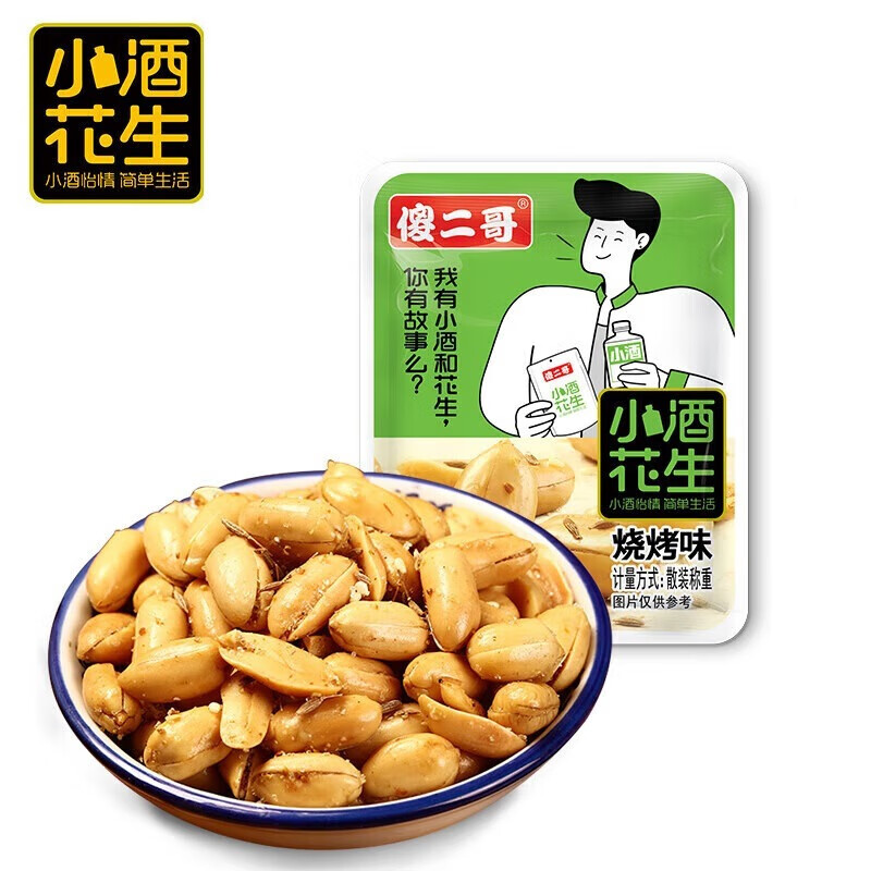 傻二哥小酒花生365g*1盒【椒盐+香辣+烧烤三口味混合各6小包】花生米