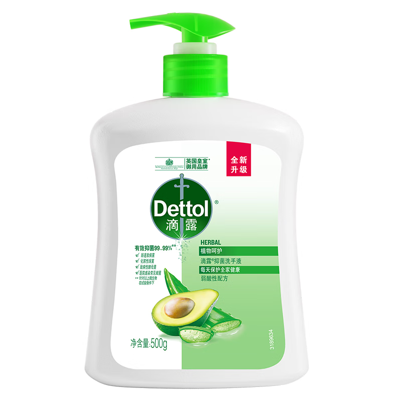 滴露(Dettol)健康抑菌洗手液植物呵护500g 消毒抑菌99.99% 儿童适用不含酒精