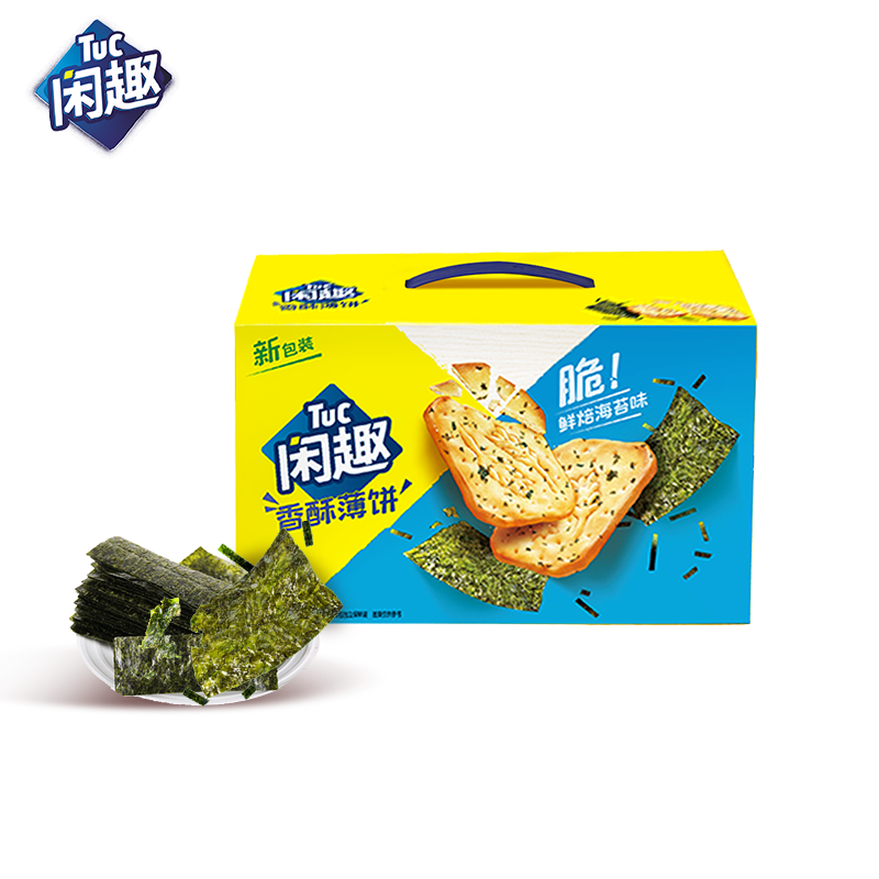 闲趣 香焙海苔味薄脆饼干 零食大礼包带提手礼盒装900g(包装随机发)