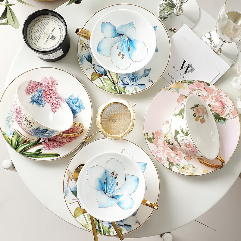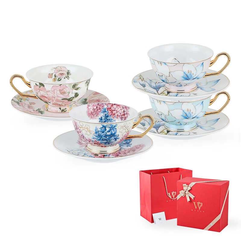 物取(WOOCH)高颜值精致杯碟礼盒装 花舞系列4杯碟-百合+玫瑰+红礼盒 W202