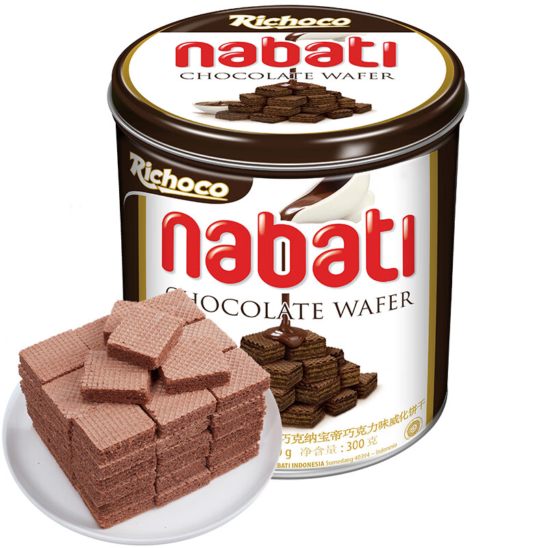 丽芝士(Richeese)印尼进口纳宝帝Nabati巧克力味威化饼干300g/罐儿童休闲零食