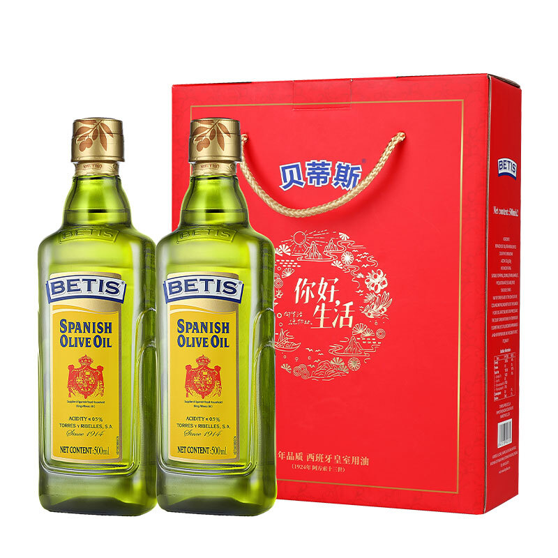 贝蒂斯(BETIS)食用油 纯正橄榄油500ml*2礼盒 端午团购送礼 西班牙原装进口
