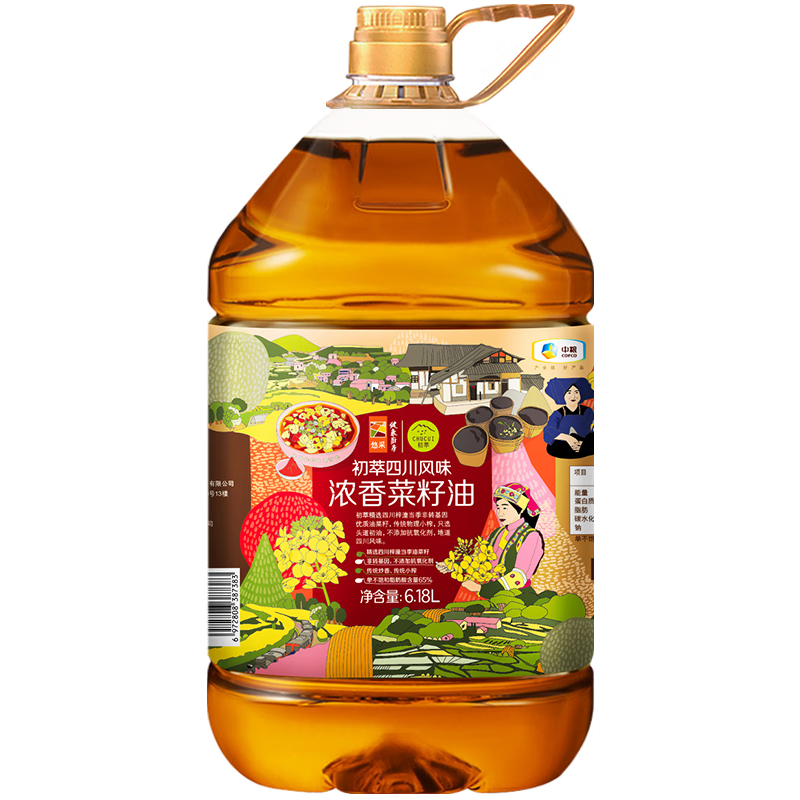 初萃 中粮浓香菜籽油6.18L 四川风味食用油 非转基因 物理压榨