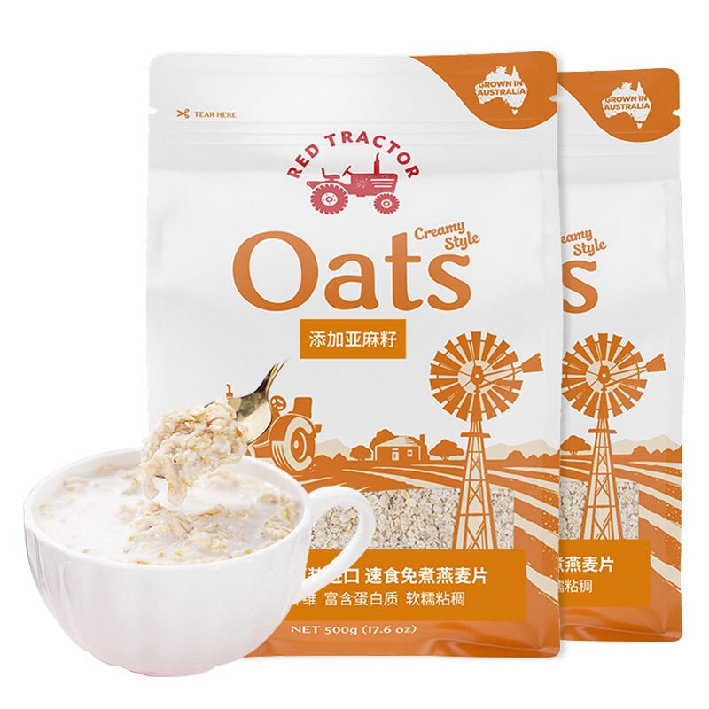 红色拖拉机 澳大利亚进口红色拖拉机亚麻籽燕麦片冲饮谷物 早餐麦片500g*2袋