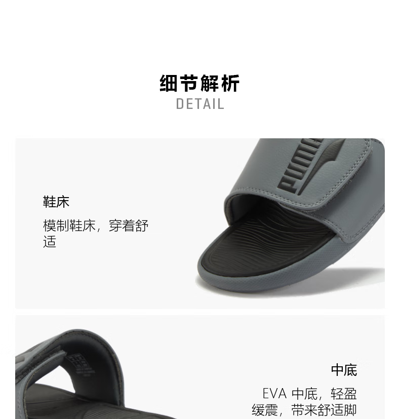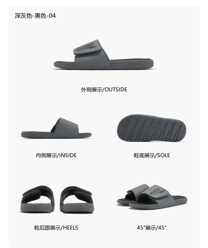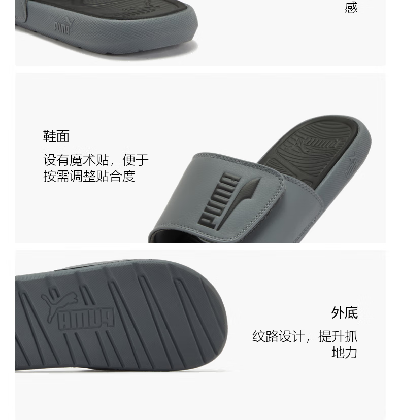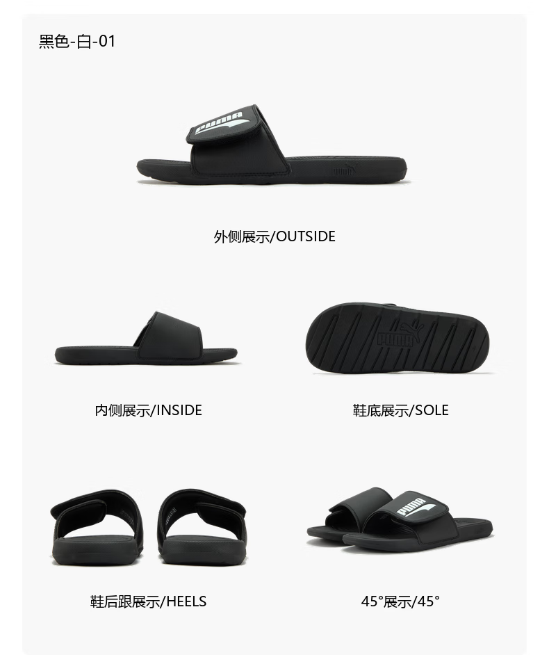 彪马PUMA 室外/居家春夏沙滩魔术贴拖鞋男女同款 390962 黑色-白-01 3