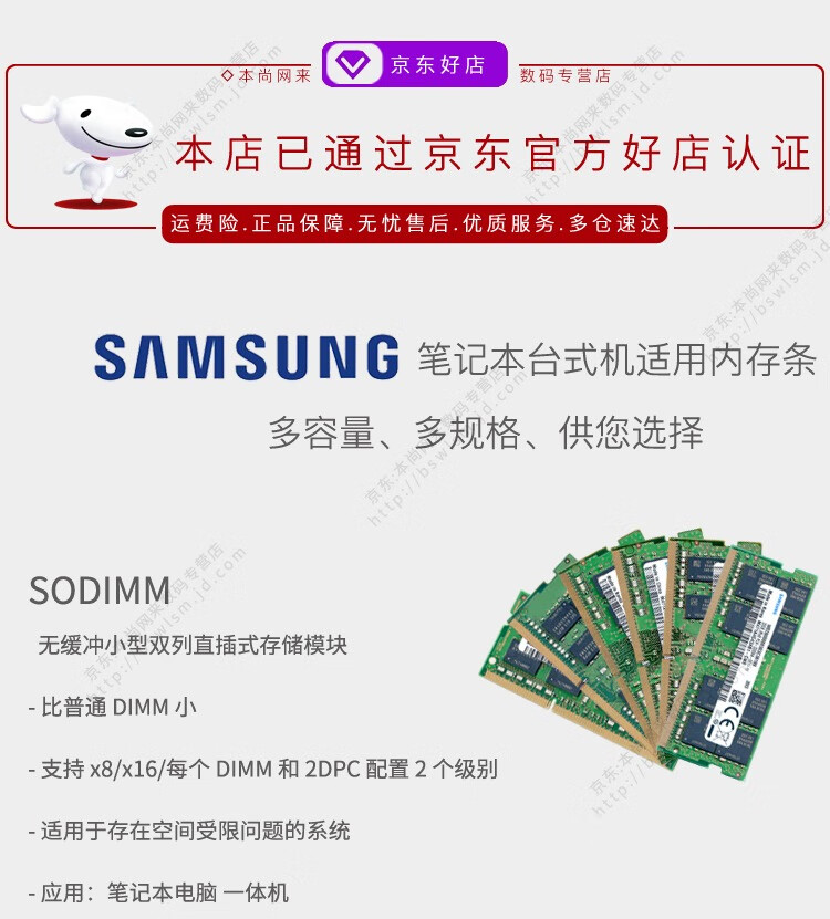 三星(SAMSUNG) 笔记本/一体机DIY电脑DDR4内存条原装适用联想戴尔华硕惠普宏碁苹果 笔记本 DDR4