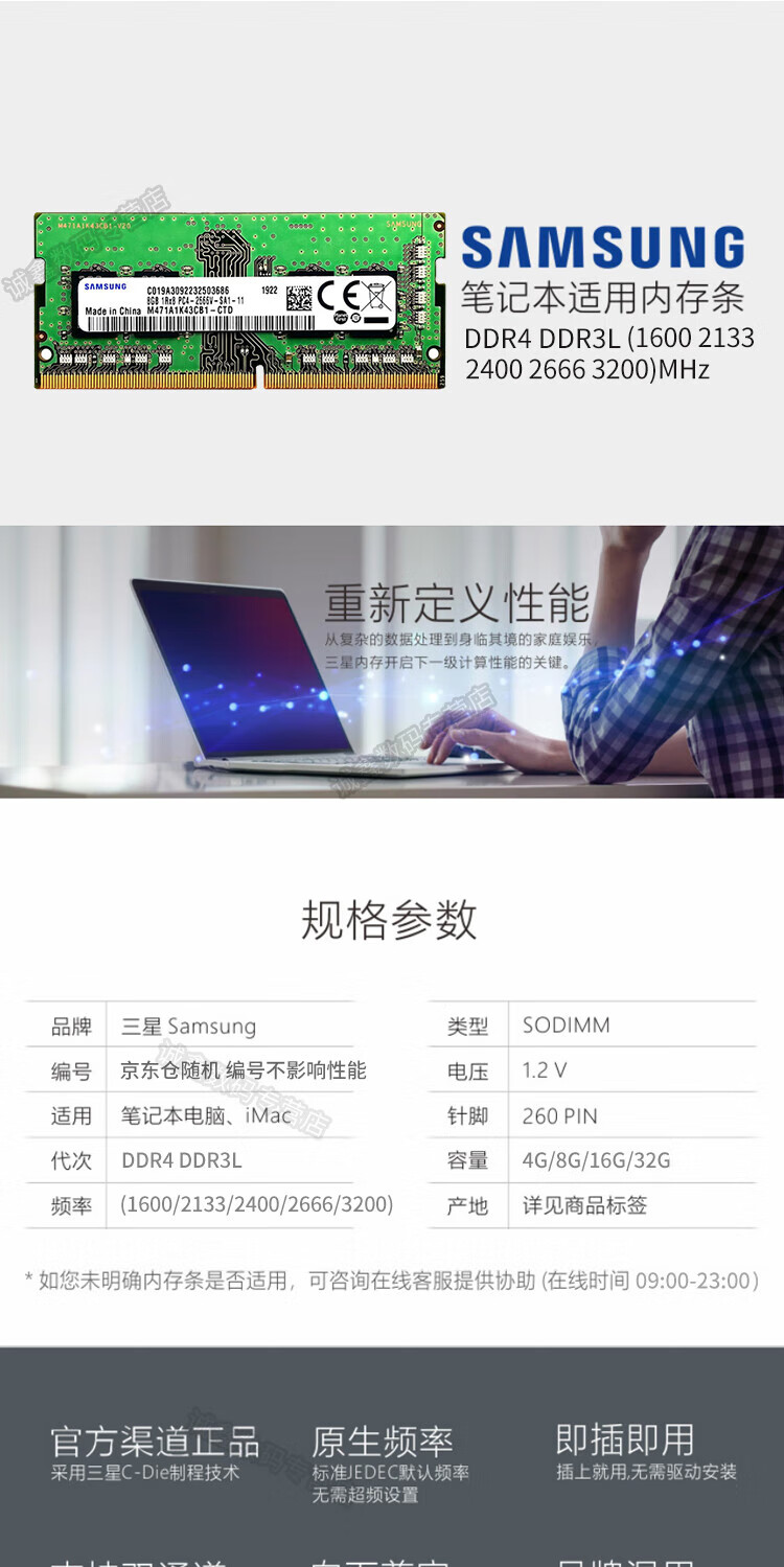 三星(SAMSUNG) 笔记本内存条ddr4适用惠普华硕联想宏碁戴尔神舟雷神机械等品牌 DDR4 2666 8G