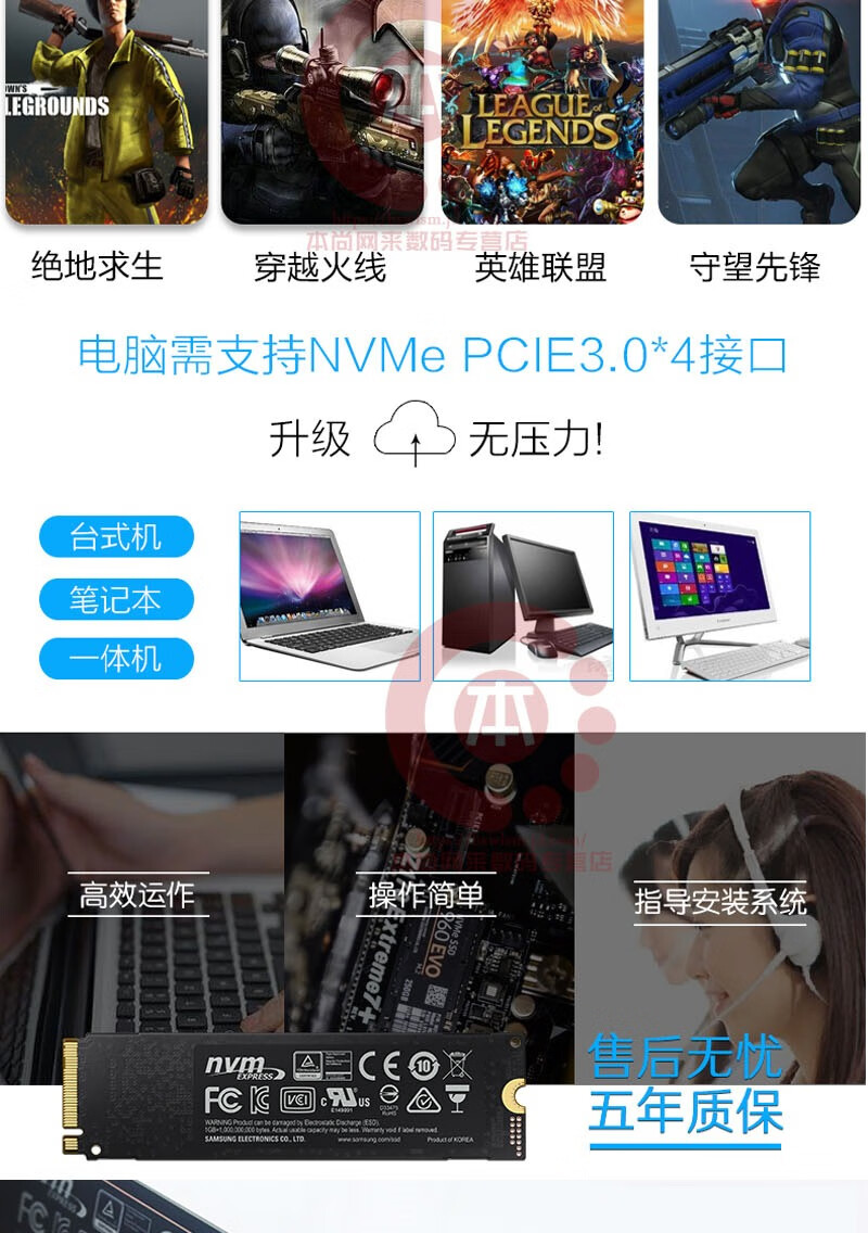 三星笔记本台式机一体机电脑服务器 SSD 固态硬盘加装/替换升级提速盒装 SATA3 512G 5年保
