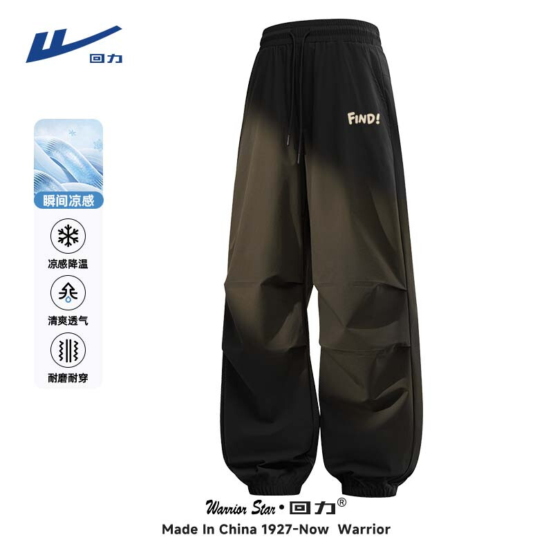 回力(Warrior)速干休闲裤男夏季潮牌工装运动裤青少年宽松冰丝裤子 黑色 3XL