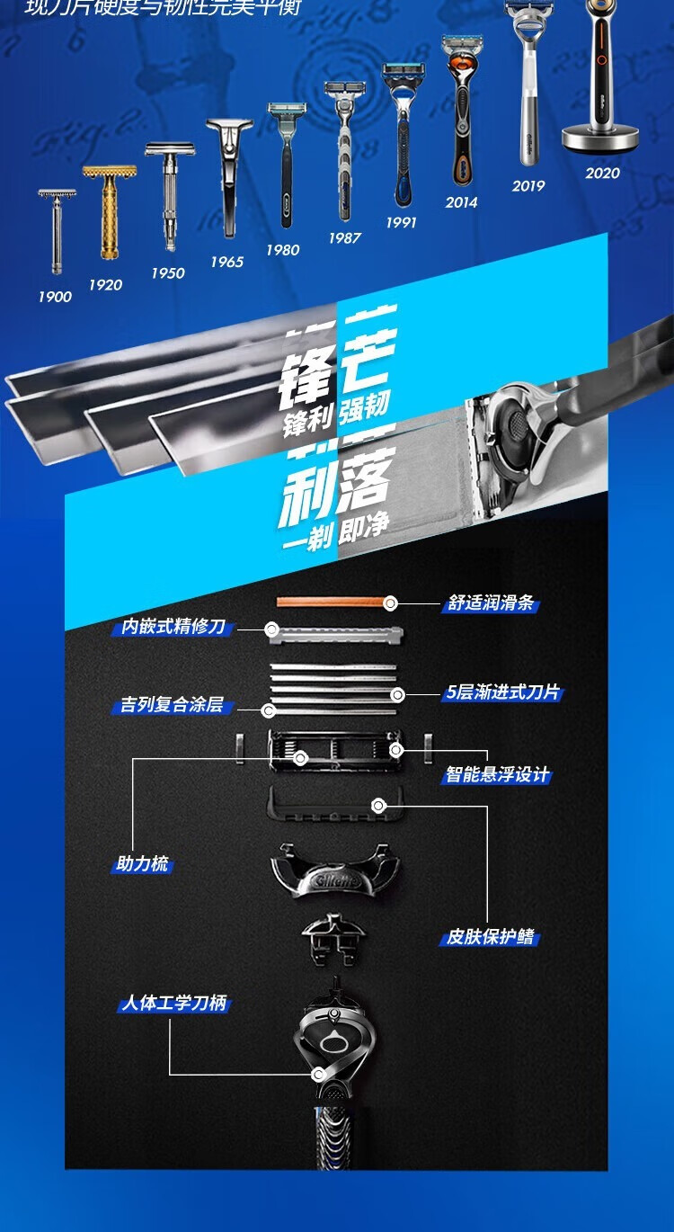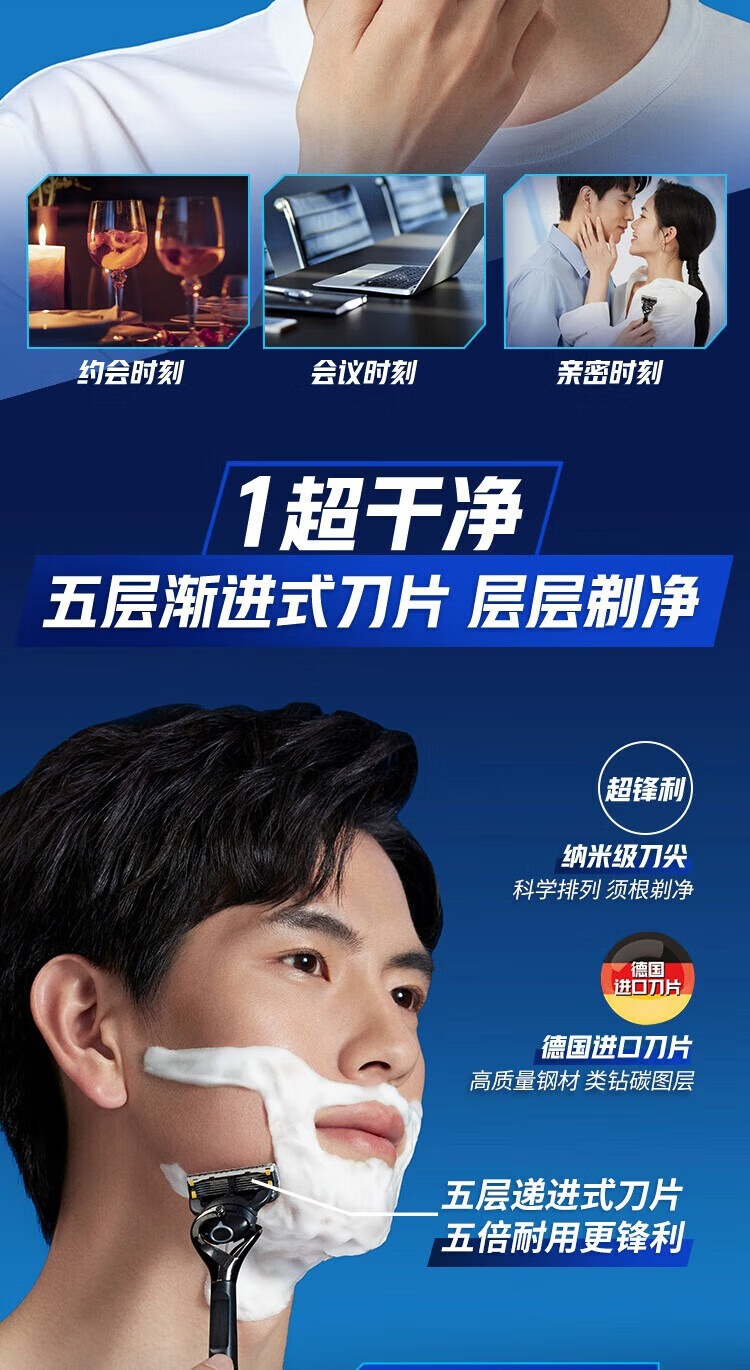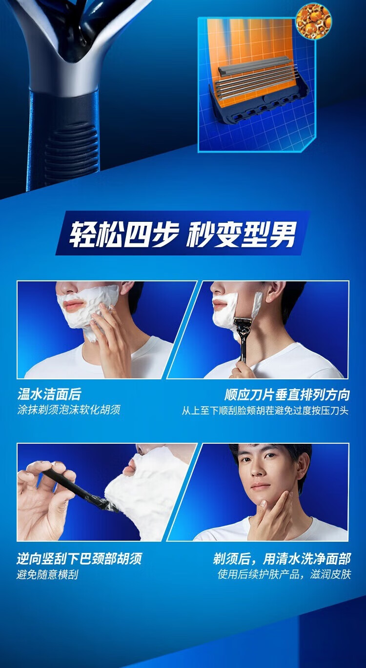 吉列剃须刀手动 云感 1刀架1刀头+致顺4刀头
