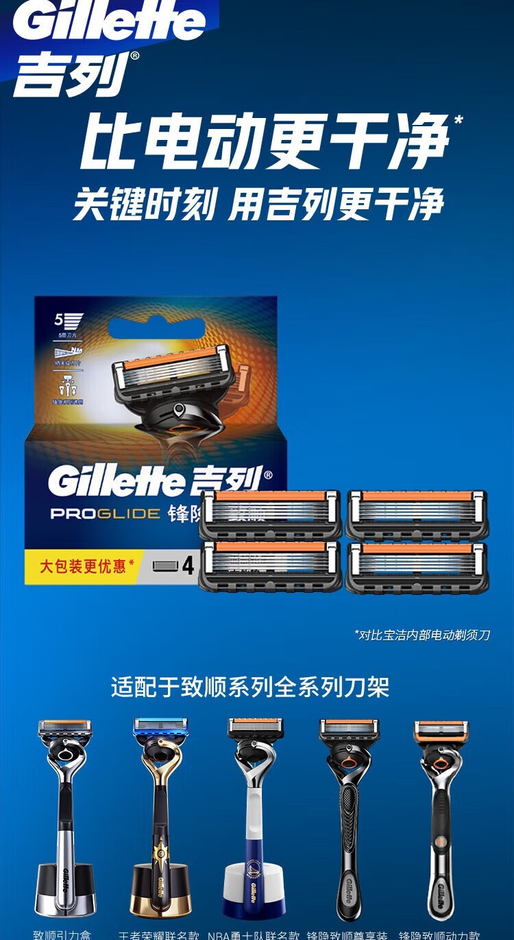 吉列刀片 适配锋速3经典 4刀头剃须刀片
