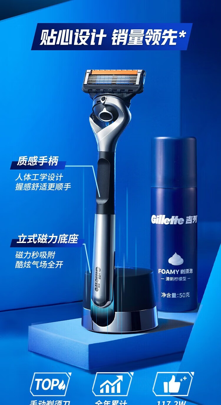 吉列剃须刀手动 云感 1刀架1刀头+致顺6刀头