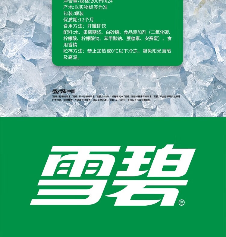 可口可乐碳酸饮料汽水 一口酷爽 尽享 清爽柠檬味雪碧(200ml*24罐)*5箱