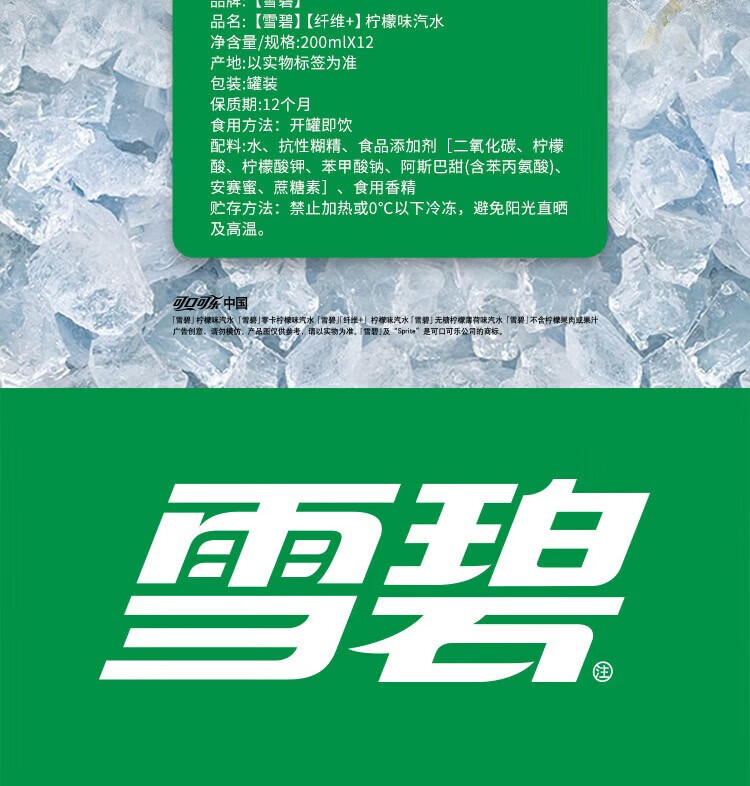 可口可乐 碳酸饮料汽水 小罐装 外出携带 无糖 雪碧纤维+(200ml*12罐)*1箱