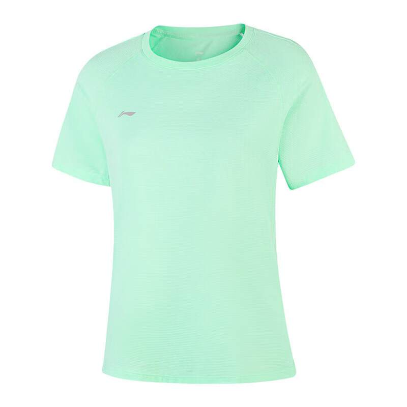 LI-NING舒适透气女款短袖T恤 速干运动上衣 ATSV436 天缥绿 3XL