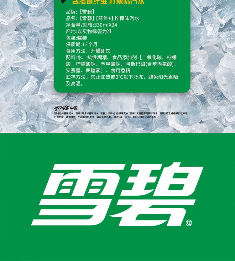 可口可乐 碳酸饮料汽水 开罐即饮 零糖零卡 雪碧纤维+(330ml*24罐)*10箱