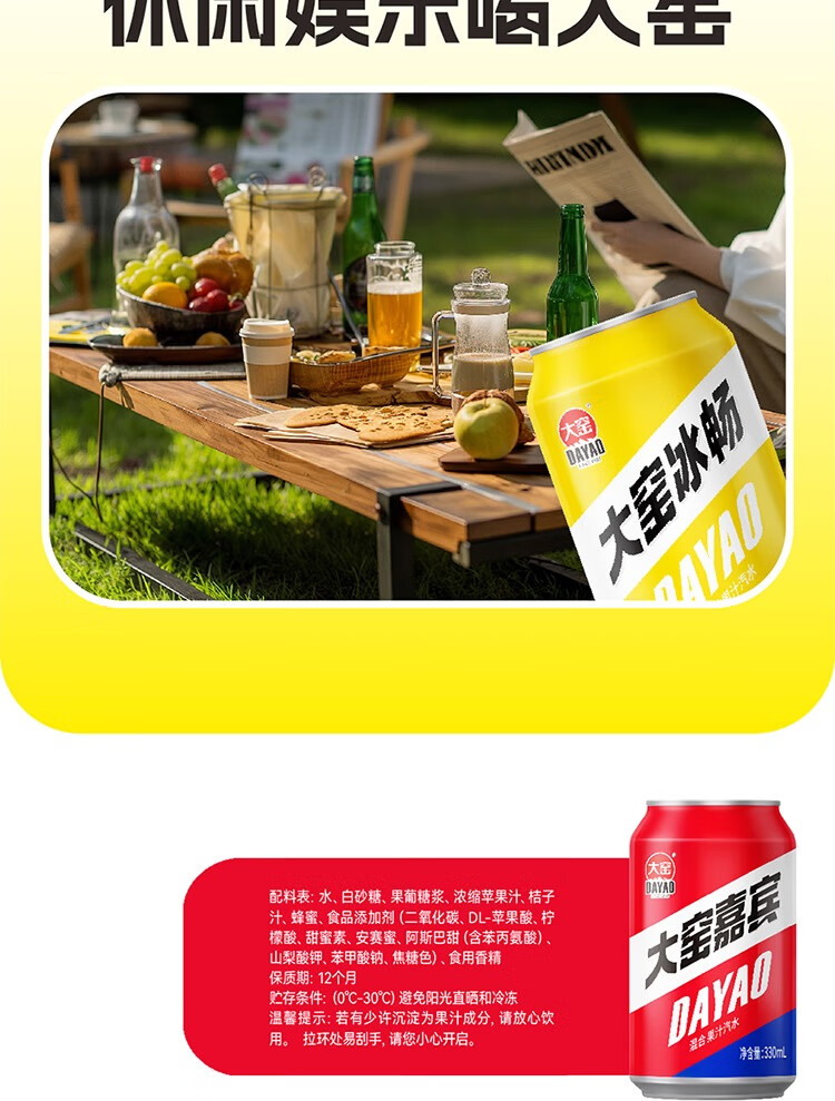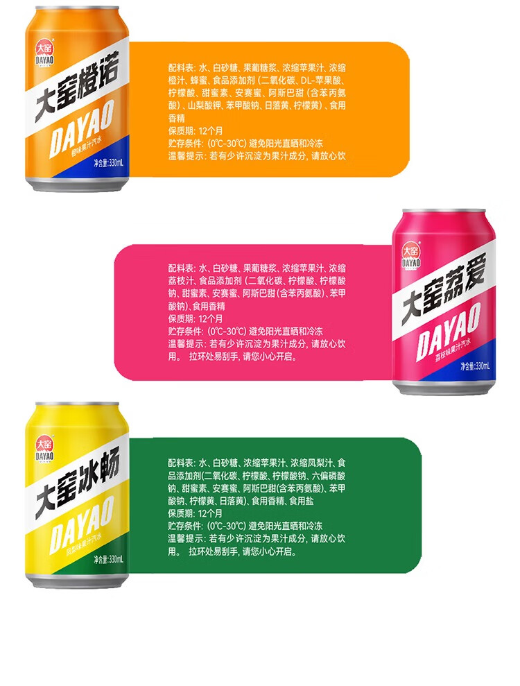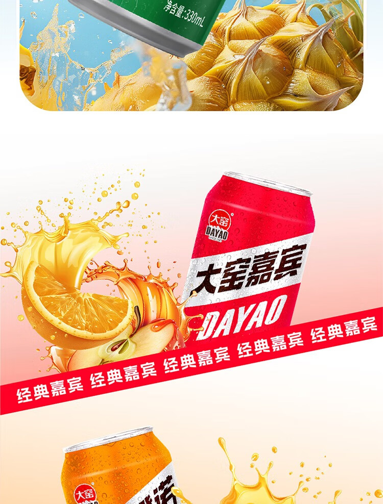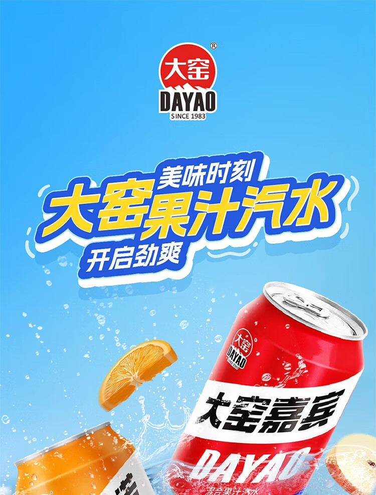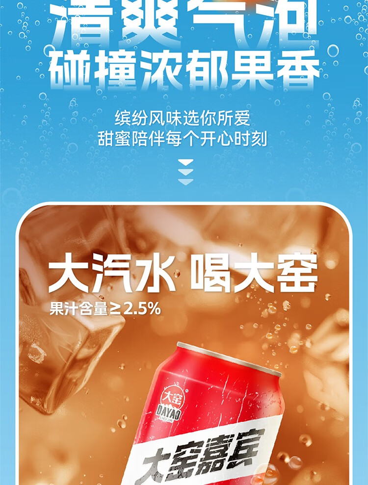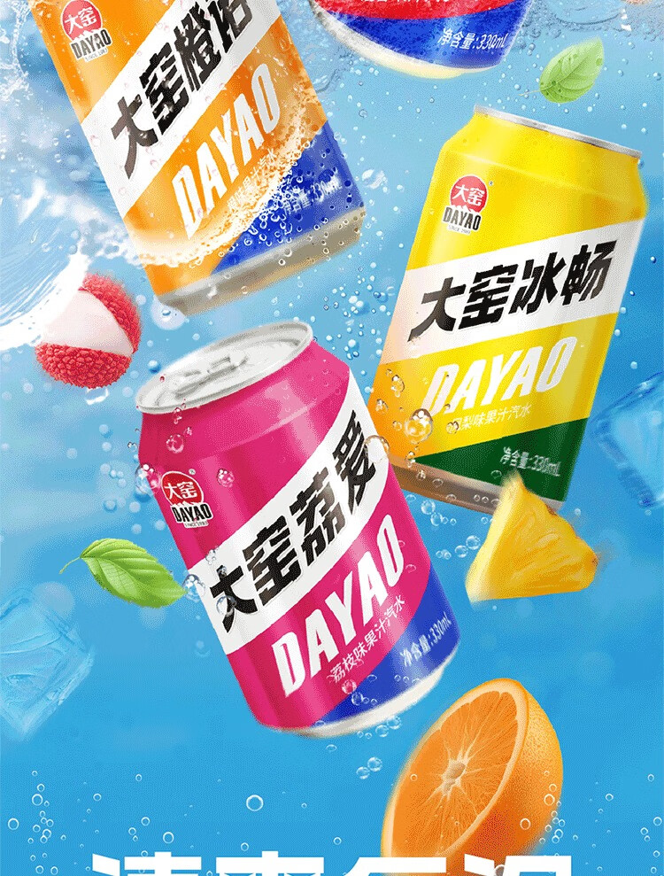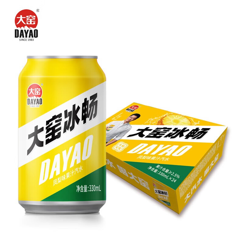 大窑 凤梨味 果汁汽水 碳酸饮料 易拉罐330mL*24罐 家庭实惠整箱装