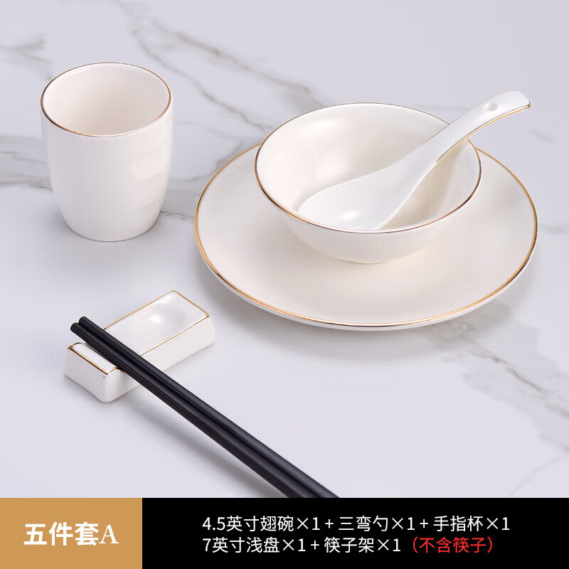 MAXCOOK5件套餐具 酒店陶瓷金边摆台餐具新中式会所盘碗骨碟套