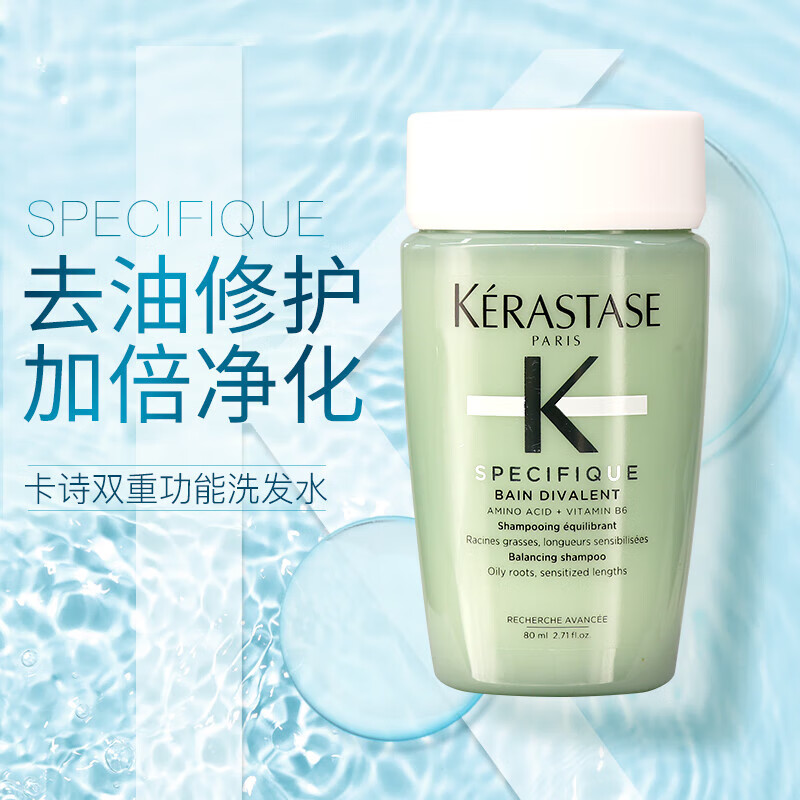 Kérastase卡诗双重功能洗发水 头皮清爽净油氨基酸去油蓬松柔顺 80ml*2瓶