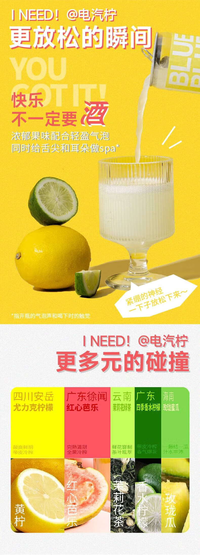 柠檬共和国 LEMON REPUBLIC 香水柠檬气泡果汁饮料柠檬汁维C 300ml*12瓶 0脂肪轻负担