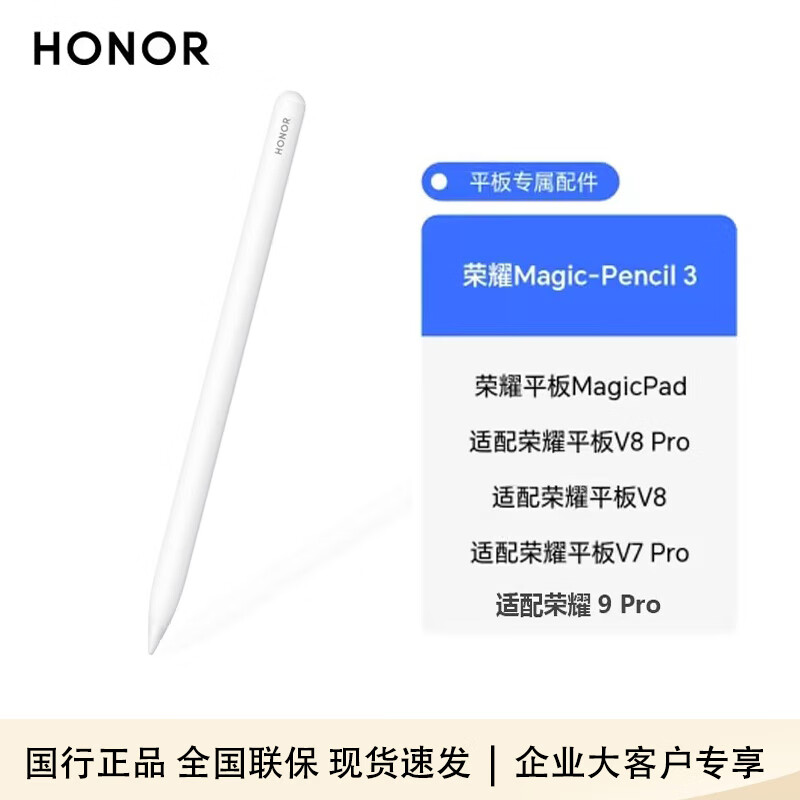 荣耀Magic-Pencil 3 手写笔 触控笔 白色【适用于荣耀平板MagicPad2、MagicPad13、V8Pro、9Pro系列】