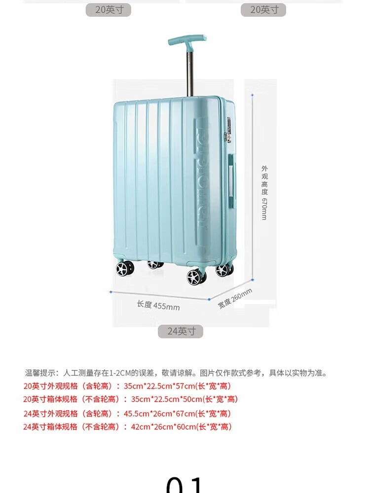 小米多彩旅行箱大容量万向轮行李箱男女拉杆箱学生密码 粉色 24英寸