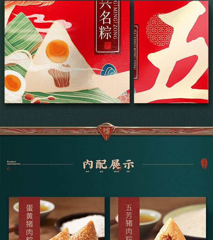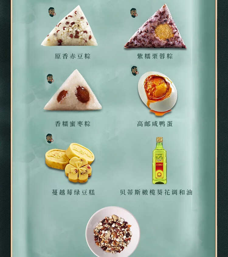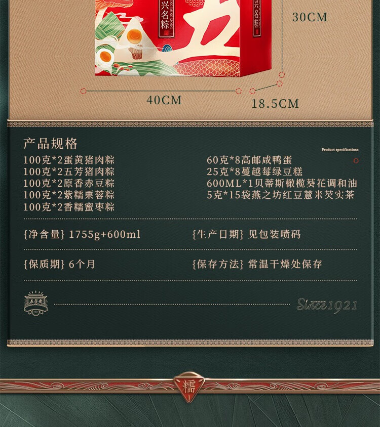 五芳斋 福利款E 1755克+600毫升端午节粽子10粽8蛋8糕1油1养生茶