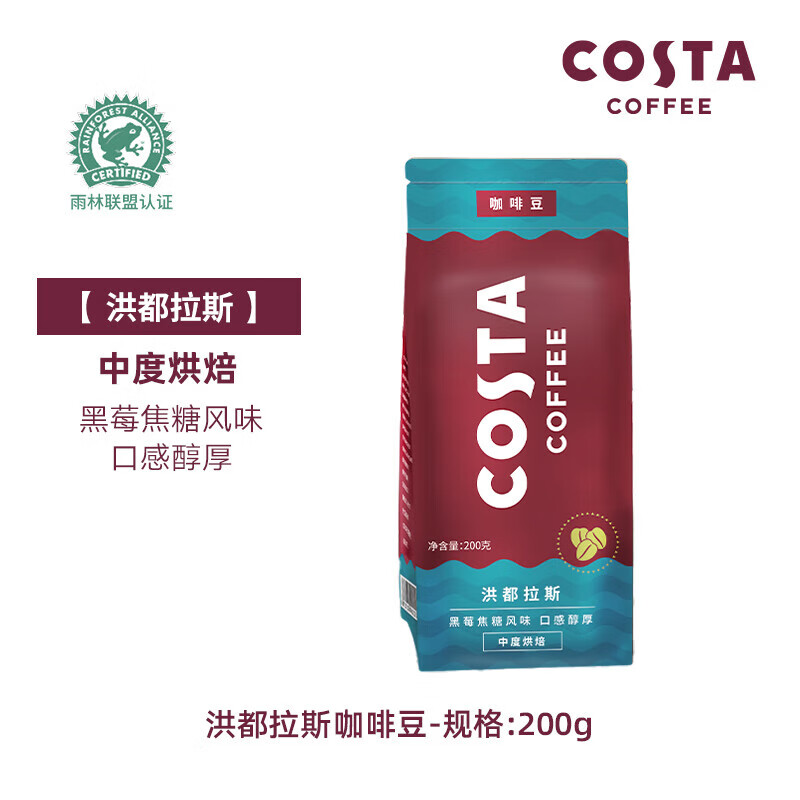 COSTA 单产地咖啡豆 100%阿拉比卡中深度烘焙豆 洪都拉斯咖啡豆200g/袋