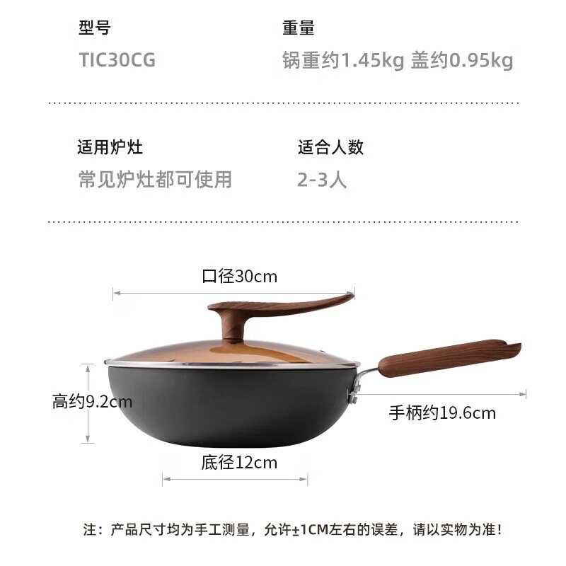 炊大皇钛铁锤纹家用平底炒菜锅钛厨铁炒锅30cmTIC30CG