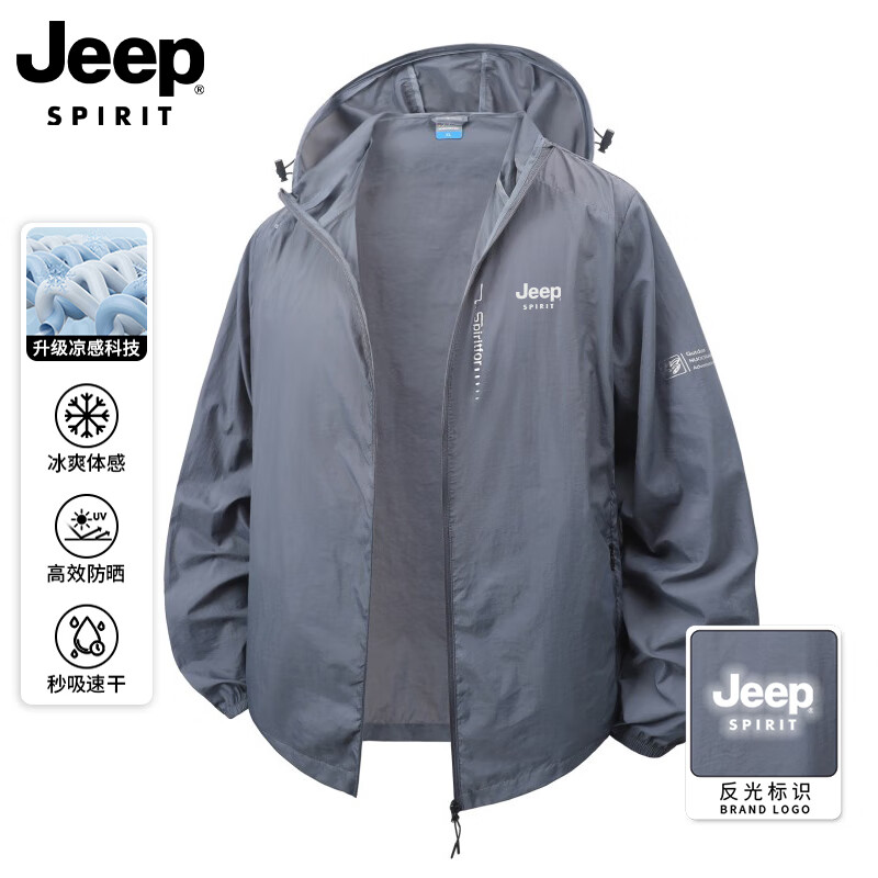 JEEP SPIRIT防晒衣男夏季速干冰感冰丝防晒服男休闲透气皮肤衣 深灰 3XL