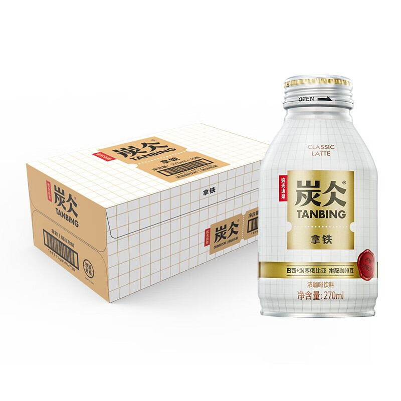农夫山泉 炭仌咖啡【拿铁】即饮咖啡270ml*15瓶 纸箱装