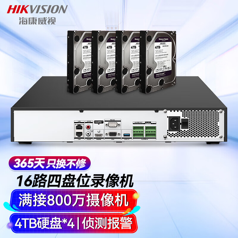 海康威视网络硬盘录像机监控16路4盘位兼容8TNVR满配16个摄像头带4TB硬盘DS-7916N-R4