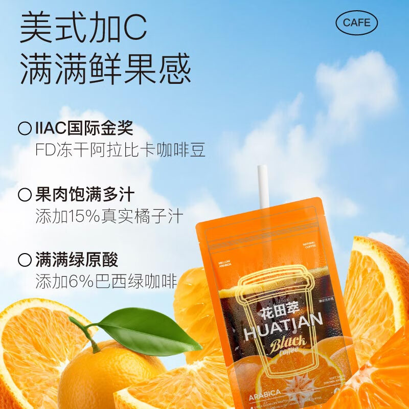 花田萃(CHALATTE)橘子美式冻干速溶冷萃黑咖啡0蔗糖0脂肪 20克*7杯